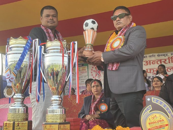 उत्कृष्ट खेलाडी मुरमुलाई उद्घाटन समारोहका प्रमुख अतिथि तथा बेदनारायण गच्छदार ले नगद ५ हजार रुपैयाँसहित मेडल प्रदान गरे।